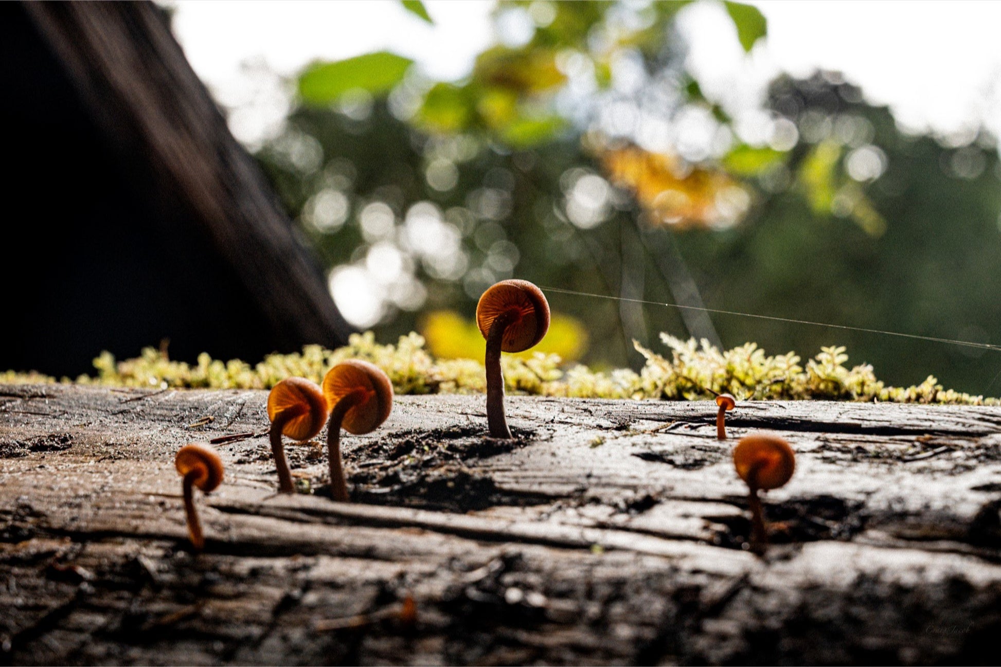 A spider’s web connecting a family of mus grooms. Taking in Olympic National Park in the autumn of 2024. The rain held out for most of the day but water was still dripping from the trees above.